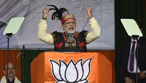 (印度总理莫迪在发言中使用演讲提词器)