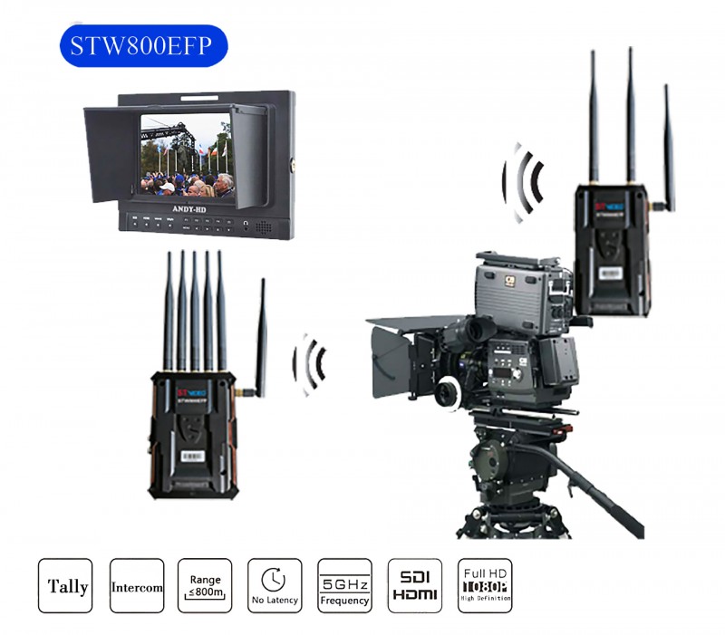 STW800EFP是一款集图传、TALLY、对讲三合一的远距离无线高清图传系统。支持无线、实时传输1080P视频,11个信道供选择,最大无障碍传输距离800米。Tally输出,无线对讲时,支持Tally信号输出和无线全双工对讲,最远达300米。兼容性好,即插即用,非常适合用于影视拍摄、赛事直播、电视广播、远程监看等。